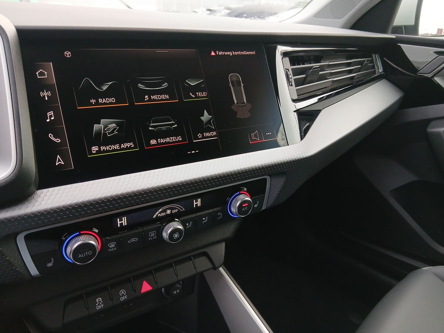 LTE-Unterstützung für Audi phone box, LED-Heckleuchten plus, Heckspoiler, Wärmeschutzverglasung Frontscheibe, Kindersitzbefestigung i-Size auf der Beifahrerseite und i-Size und Top Tetherauf den äußeren Fondsitzen, Sportkontur-Lederlenkrad, 3-Speichen, unten abgeflacht mit Multifunktion plus, Fußgänger- und Radfahrerschutzmaßnahmen erweitert und vorausschauend, Fußhebelwerk "Standard", Instrumenteneinsatz, Anzeige in KM/H, Sportsitze vorn, Top-Infotainment High (MIB3), Nichtraucherausführung, Waschwasser-Standanzeige, Nebelschlussleuchten, Schlüssel für Schließsystem, Licht-/Regensensor, Heckscheiben-Wisch-Waschanlage mit Intervallschaltung, Tagfahrlicht, Drehstromgenerator 140 A, Einparkhilfe hinten, Vorbereitung für MMI Navigation plus, Einstiegsleisten mit Aluminiumeinlegern vorn, Start-Stop-System mit Rekuperation, Reifendruck-Kontrollanzeige, Schalt-/Wählhebelknauf, Wegfahrsperre elektronisch, Handbremshebelgriff in Leder, Dachhimmel in Stoff in spezifischer Farbe, Audi pre sense front, Spurverlassenswarnung, Dachkuppel in Wagenfarbe, Kopfstützen vorn, Außenspiegel links, asphärisch, Außenspiegel rechts (großes Sichtfeld), konvex, Beklebung RdW, Trägerfrequenz 433,92 bis 434,42 MHz, Seitenairbags vorn und Kopfairbagsystem, Abgaskonzept, WLTP3 M1, N1-I//EU6EB, Airbags vorn, Beifahrerairbag deaktivierbar, Fensterheber, Modul Boden hinten Ausführung 1, Innenspiegel abblendbar, Kennzeichenträger vorn und hinten (ECE), Dreip.Automatikgurte hinten außen mit Straffer für EU28, Kopfstützen hinten, Dreip.Automatikgurte vo.m.Gurtstraffer und Höheneinstellung, Rücksitzlehne umklappbar, Normalausführung, Aufkleber/Schilder, englisch-deutsch, Stoßfänger advanced, Sicherheitslenksäule, Serienkraftstoff-Erstbefüllung, Scheibenbremsen vorn, 14 Zoll, Differenzialsperre ( XDS ) Dynamische Traktions Hilfe, Frontantrieb, Verbandmaterial mit Warndreieck, Fahrzeugklassen-Differenzierung-GB0/GBS-, Radschrauben Standard, Elektromechanische Servolenkung, Normalluftfilter, Trommelbremsen hinten, Sitzbelegungserkennung, Reifenreparaturset, Aktivkohlebehälter (EVAP), spezielles Typschild EU, Kraftstoffsystem Otto-Einspritzer (Tropicalisiert), Elektronisches Stabilisierungsprogramm ESP, Überhang hinten, kurz, Standard-Klimazonen, Bordliteratur in Deutsch, Fußmatten vorn und hinten, Hinterachse verstärkt ( Ausführung 2), Mit spez.Schilder/Aufkleber/ Sicherheitszertifikate für Deutschland, Fertigungsablauf Seat, Einbau Differenzierung für Getriebe"DQ 200" -- Fahrzeugteile --, Standard, Radstand, 5 Türen, Stabilisator vorn, Berganfahrassistent, 3 Zyl.Ottomotor 1,0L Aggr. 05C.B, Digitaler Radioempfang, Kamerabasierte Verkehrszeichenerkennung, Innenbeleuchtung, Mit Multifunktionskamera, Serviceanzeige 30000 km oder 2 Jahre ( variabel ), Sprachdialogsystem, Wartungsintervallverlängerung, Audi connect Notruf & Service, Steuerung SWIN, Linkslenker, Sportback, Kältemittel R1234yf, Batterie 380A (59Ah) EFB+, Reifen 215/45 R17 91W xl, Ottomotor, Audi connect Navigation & Infotainment plus, S tronic, Dämpfung vorn, Akzentflächen schwarz glänzend, Ländergruppe A, Räder der Serie, Variante Grundausstattung, Abwicklung Serie, Regionscode " ECE " für Radio, Ablenkungs- und Müdigkeitserkennung, Audi connect Remote & Control (für MMI Navigation plus), 3-Zylinder-Ottomotor 1,0 L/70 KW TSI Grundmotor ist: TJ4/TC5/T26/T0M, Typprüfland Deutschland, advanced, Kategorie 0, Audi AG, Version (high), Rechtsverkehr, Serienqualität, Landesverkaufsprogramm Deutschland, Audi phone box, Audi Soundsystem, Audi virtual cockpit, 2-Zonen-Komfortklimaautomatik, Geschwindigkeitsregelanlage, Leuchtweitenregulierung, LED-Scheinwerfer, Lendenwirbelstütze, manuell einstellbar in Vordersitzlehnen, Außenspiegel elektrisch einstell-, beheiz- und anklappbar, Außenspiegelgehäuse in Wagenfarbe, Komfortmittelarmlehne vorn, Dekoreinlagen Polygonstruktur Feinlack schiefergrau, Optikpaket schwarz, Sonnenschutzverglasung abgedunkelt, Komfortschlüssel, ohne Safelock, Sitzheizung vorn, Beifahrersitz höheneinstellbar, Gepäckraumpaket, Entfall Modellbezeichnung und Leistungs-/Technologie-Schriftzug, Bordwerkzeug und Wagenheber, Sportfahrwerk, Akzentflächen Diamantlack silbergrau, Infotainmentpaket plus, Smartphone-Interface, LED-Scheinwerfer und LED-Heckleuchten plus, Leder/Kunstleder mono.pur 550-Kombination, Betriebserlaubnis Nachtrag, Räder, 5-V-Speichen, graphitgrau, glanzgedreht, 7,5Jx17, Reifen 215/45 R17