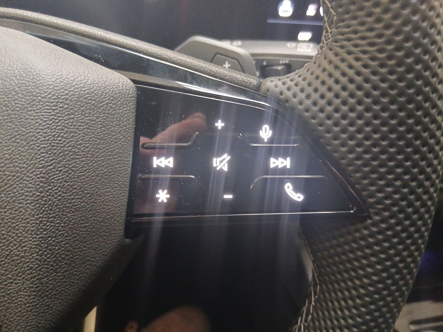 Sportlederlenkrad, 3-Speichen, oben und unten abgeflacht mit Multifunktion und Schaltwippen