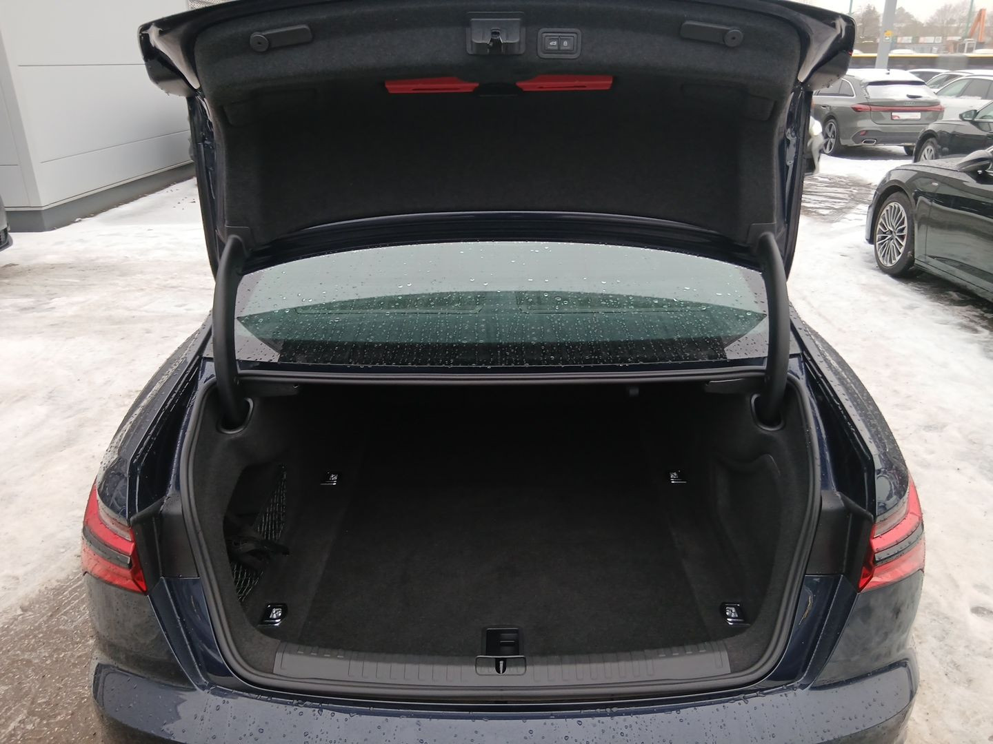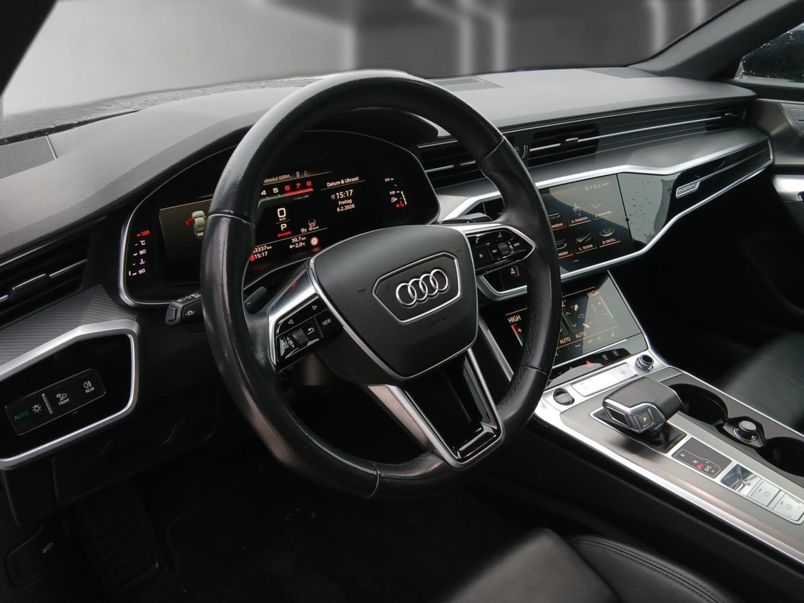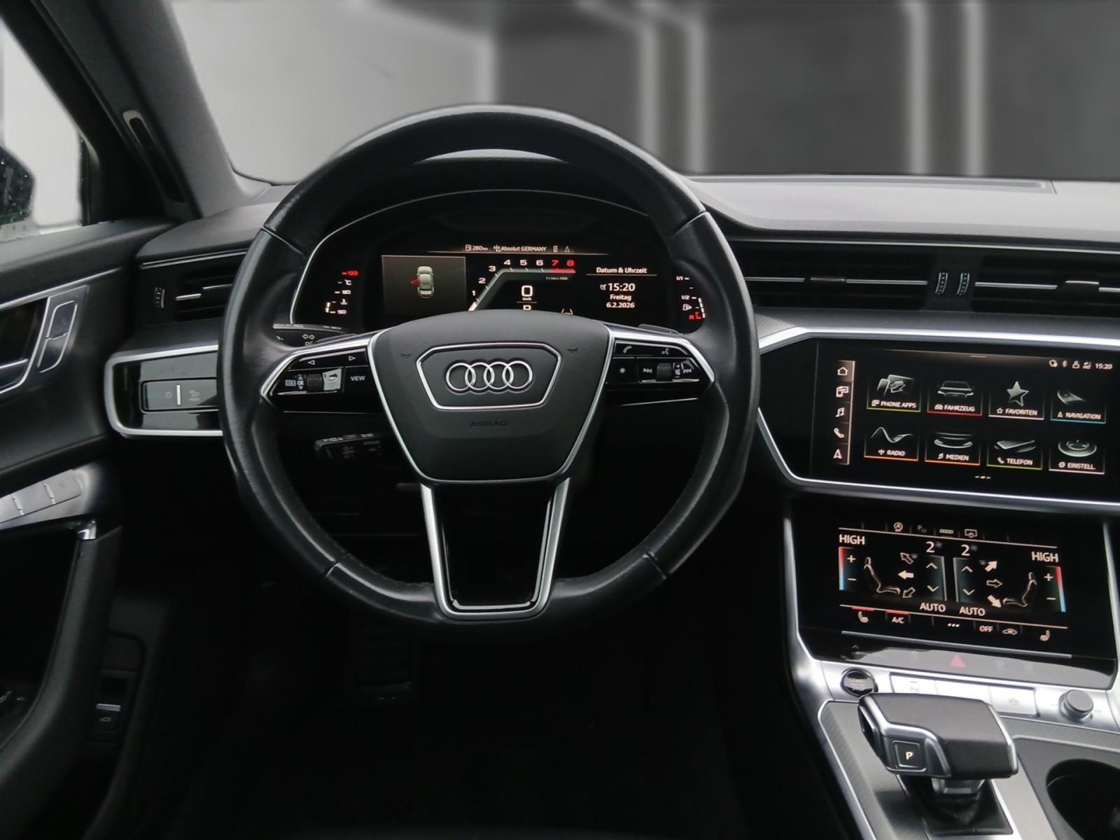 Kindersitzbefestigung ISOFIX für den Beifahrersitz, Panorama-Glasdach, Vorbereitung für Anhängevorrichtung, Steuerungsnummer, Steuerungsnummer direkt, Businesspaket, Winterräderverbau in der Serie, Ambiente-Lichtpaket, Ablagepaket, Komfortschlüssel mit sensorgesteuerter Gepäckraumentriegelung, Assistenzpaket Tour, Leder Valcona, Rückfahrkamera, Bedientasten schwarz glänzend mit haptischem Feedback und Aluminiumoptik Interieur, LTE-Unterstützung für Audi phone box, Betriebserlaubnis Nachtrag, Audi Soundsystem, Adaptive Scheibenwischer mit integrierten Waschdüsen, Adaptiver Geschwindigkeitsassistent mit Geschwindigkeitsbegrenzer, Effizienz-, Ausweich- und Abbiegeassistent, Spurwechselwarnung mit Ausstiegswarnung und Querverkehrassistent hinten, Audi pre sense rear, Einstiegsleisten mit Aluminiumeinlegern vorne und hinten, Wegfahrsperre elektronisch, Außenspiegel elektrisch einstell-, beheiz- und anklappbar, beidseitig automatisch abblendend, mit Memoryfunkt, Instrumententafel und Türverkleidung einteilig-einfarbig, Adaptiver Fahrassistent mit Notfallassistent, Komfortmittelarmlehne vorn, Folienbeklebung, Seitenairbags vorn und hinten inkl. Kopfairbagsystem und beleuchteten Gurtschlössern, Scheiben seitlich und hinten abgedunkelt in Wärmeschutzverglasung, Komfortschlüssel mit sensorgesteuerter Gepäckraumentriegelung, ohne Safelock, Frontscheibe in Wärmeschutzverglasung, Gepäckraumklappe elektrisch öffnend und schließend, Rücksitzbank umklappbar (Fondsitze 2+1 Sitzer), Vordersitze elektrisch einstellbar mit Memory-Funktion für den Fahrersitz, Kindersitzbefestigung ISOFIX und Top Tether für die äußeren Fondsitze, Modellbezeichnung gemäß neuer Leistungskennzeichnung, Stoßfänger sport line, Erhöh.der Serienkraftstofferstbefüllung, Lederlenkrad 3-Speichen mit Multifunktion und Schaltwippen, Verbandmaterial mit Warndreieck und Warnwesten, Scheibenbremsen vorn, 18 Zoll (ECE), Scheibenbremsen hinten, 17 Zoll (ECE), Standardabgasanlage, Fußgängerschutzmaßnahmen erweitert, 48 Volt Bordnetz, Fußhebelwerk "Standard", Instrumenteneinsatz, Anzeige in KM/H, Digitaler Radioempfang, Kamerabasierte Verkehrszeichenerkennung, Mit Multifunktionskamera, Memory-Funktion für den Fahrersitz, Kindersicherheits-Paket, Spurwechselwarnung mit Audi pre sense rear, Ausstiegswarnung und Querverkehrassistent hinten, Audi Smartphone Interface, Audi connect Navigation & Infotainment, quattro (mit ultra Technologie), N.N.N. Ausführung 1, Räder, 5-V-Speichen, graphitgrau, glanzgedreht, 8,5Jx20, Reifen 255/40 R20, Nichtraucherausführung, Riemenstartergenerator RSG 48V 110-250 A, Doppelton-Signalhorn, LED-Heckleuchten, Tagfahrlicht, LED-Scheinwerfer, MMI Navigation plus mit MMI touch response, 4-Wege-Lendenwirbelstütze für die Vordersitze, Start-Stop-System, Reifendruck-Kontrollanzeige, Schalt-/Wählhebelknauf, sport, Audi AG, Rechtsverkehr, Serienqualität, Landesverkaufsprogramm Deutschland, Audi phone box, Einparkhilfe plus mit Umgebungsanzeige, Audi virtual cockpit plus, 4-Zonen-Komfortklimaautomatik, Fernlichtassistent, Dachhimmel in Stoff schwarz, Optikpaket schwarz, Airbag für Fahrer und Beifahrer mit Beifahrer-Airbag-Deaktivierung, Innenspiegel automatisch abblendend, rahmenlos, Sitzheizung vorn, Geschwindigkeitsbegrenzungsanlage, Kennzeichenträger vorn, Heckblende (ECE), Außenspiegel rechts, asphärisch, Audi pre sense front, Außenspiegelgehäuse in Wagenfarbe, Kopfstützen vorn, Sonnenblende auf Fahrer- und Beifahrerseite, Außenspiegel links, asphärisch, Dekoreinlagen Aluminium Fragment, Trägerfrequenz 433,92 bis 434,42 MHz, Abgaskonzept, EU6 AP, Dachreling, Entfall, PKW-Ausführung, Aufkleber/Schilder, englisch-deutsch, Audi drive select, Sicherheitslenksäule, quattro, Einbauteile f.6 Zyl.Motor, Fahrzeugklassen-Differenzierung-4K0/4KA-, Bordwerkzeug, Federung Standard, Radschrauben Standard, Sitzbelegungserkennung, Reifenreparaturset, spezielles Typschild EU, Serienfahrwerk, Kraftstoffsystem Otto-Direkteinspritzung(FSI), Standard-Klimazonen, Bordliteratur in Deutsch, Fußmatten vorn und hinten, Kraftstoffbehälter, Mit spez.Schilder/Aufkleber/ Sicherheitszertifikate für Deutschland, Mild-Hybrid, Gewichtsklasse Vorderachse Gewichtsbereich 11, Fertigungsablauf Standard, Audi music interface, 6 Zyl.Ottomotor 3,0L Aggr. 06M.C, Sportsitze vorn, Progressivlenkung, Heckscheibe, hintere Tür- und Seitenscheiben in Klarglas