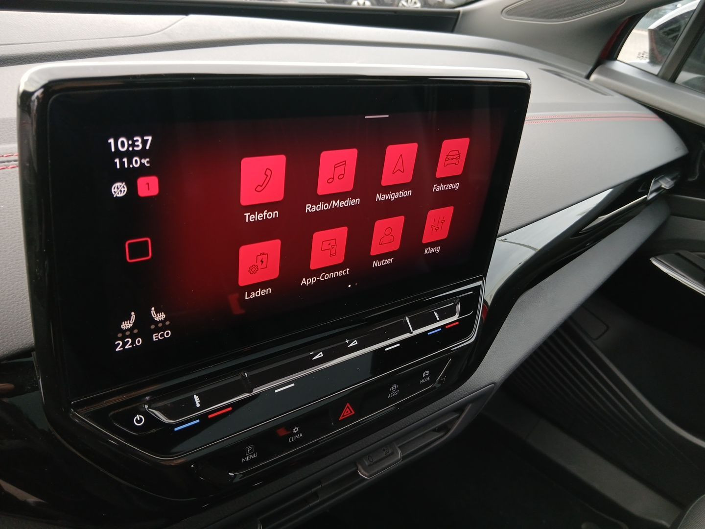 Einfassung des Infotainment-Displays undder zentralen Bedienelemente in Schwarz