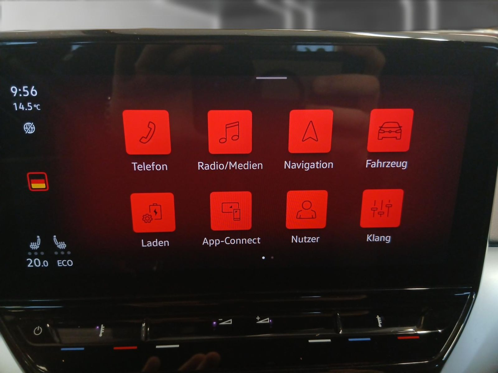 Einfassung des Infotainment-Displays undder zentralen Bedienelemente in Schwarz